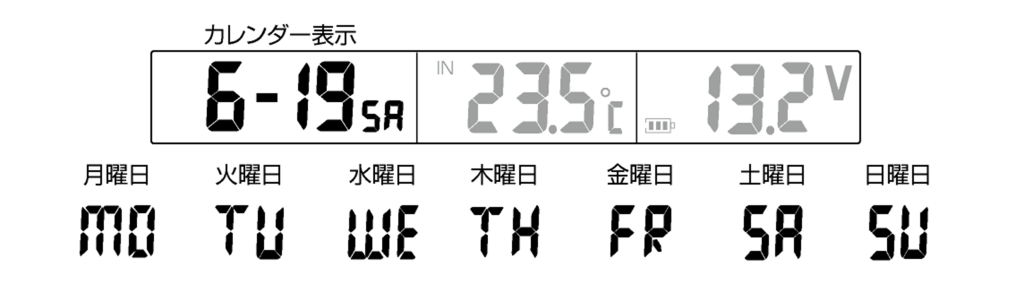 | ②カレンダー表示 | : | 西暦 / 月 日・曜日 | |