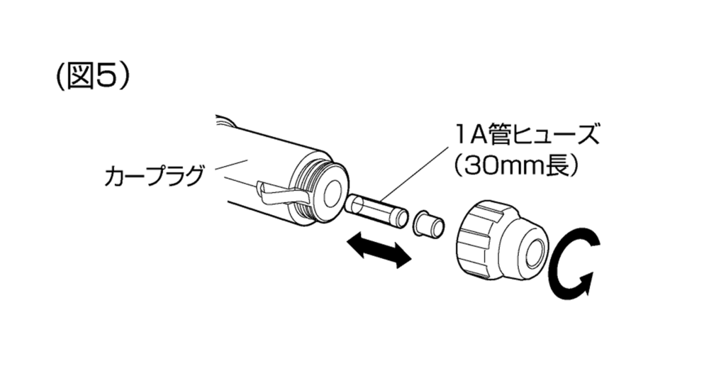 - カープラグ頭部を回して管ヒューズを抜きます。(図5)