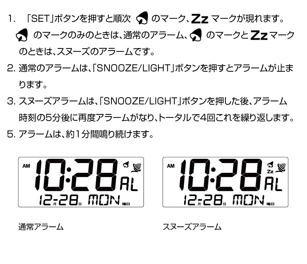 | スヌーズ時間 4分間(合計4回繰り返し) |