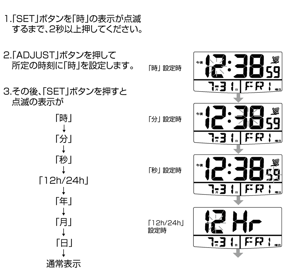 7. 手動時刻設定の方法(マニュアル時刻セット)