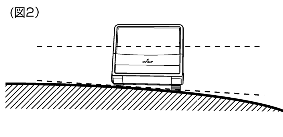 - 本体が水平にならない場合は付属の両面スポンジテープを重ねて調整してください (図2)