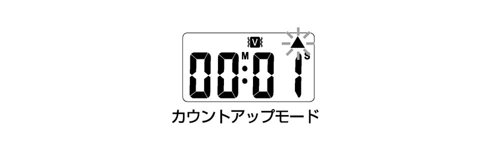 - タイマーの時間が00:00になるとすぐにカウントアップタイマーになり、アラームを30秒間発します。その際、液晶表示は[▲]になります。