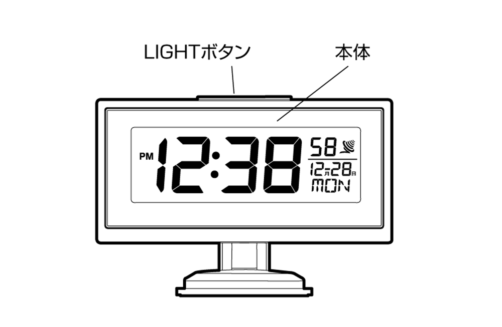 ・LEDバックライトを点灯させる時に使用します。(押すと約5秒間点灯します。)