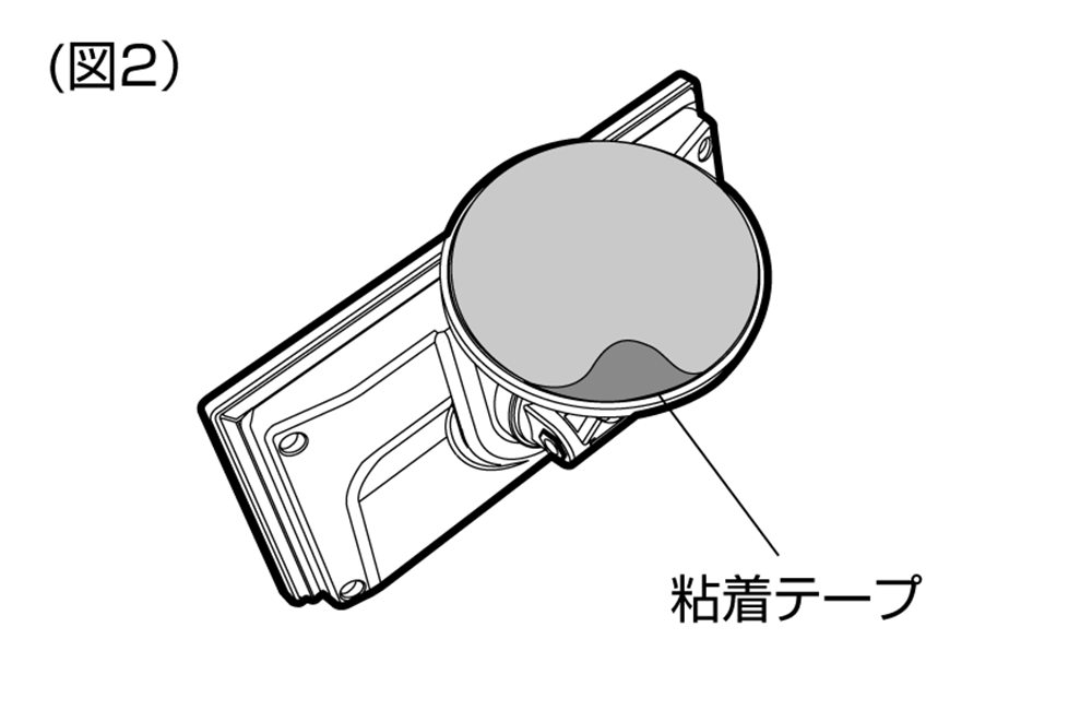 - 取付ベースの粘着テープの保護紙をはがして取付場所に貼り付けます。(図2)